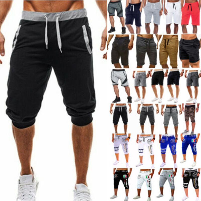 Mens 3 4 Calf Length Jogger Shorts Pants Sports Trousers Cropped Sweatpants New Ebay